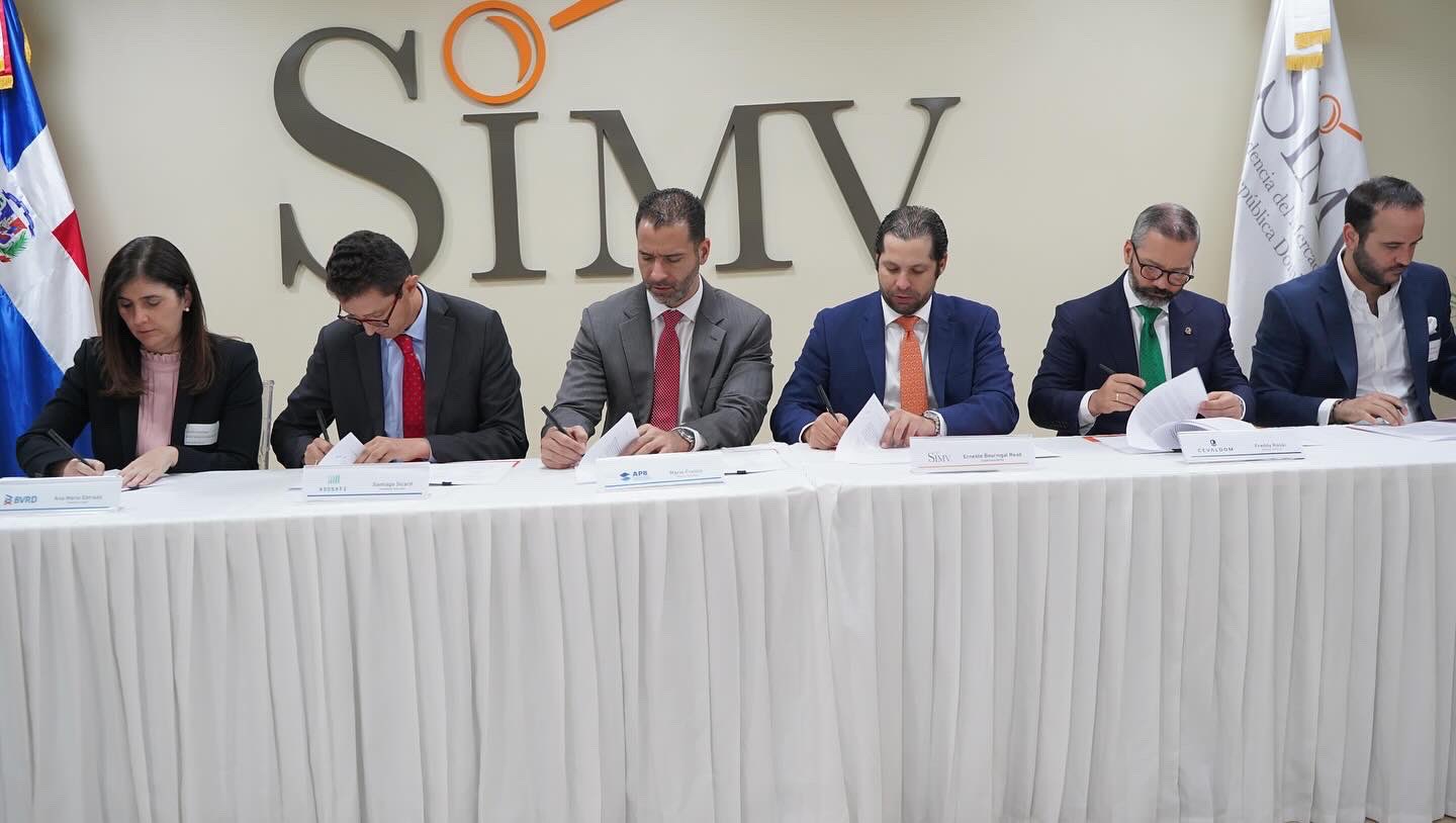 El 20 de mayo del 2024 firmamos un trascendental acuerdo de cooperación con la Superintendencia del Mercado de Valores, la Bolsa de Valores de la República Dominicana (BVRD), la Asociación de Puestos de Bolsa (APB), Cevaldom, la Asociación Dominicana de Sociedades Administradoras de Fondos de Inversión (ADOSAFI).